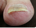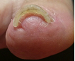 こんな感じで、かなり食い込みが激しく、痛くてつま先を着いて歩けなく、ビッコを引いて歩いてこられました。